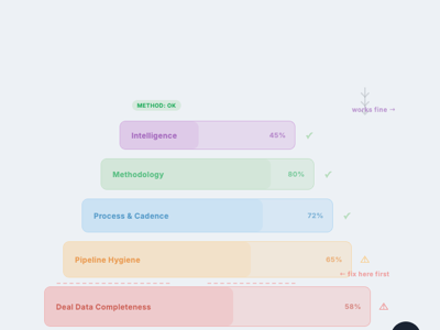 Your deal pipeline is a data structure. When stages, exit criteria, and required properties break, forecasting and AI produce garbage. Diagnose and fix it.